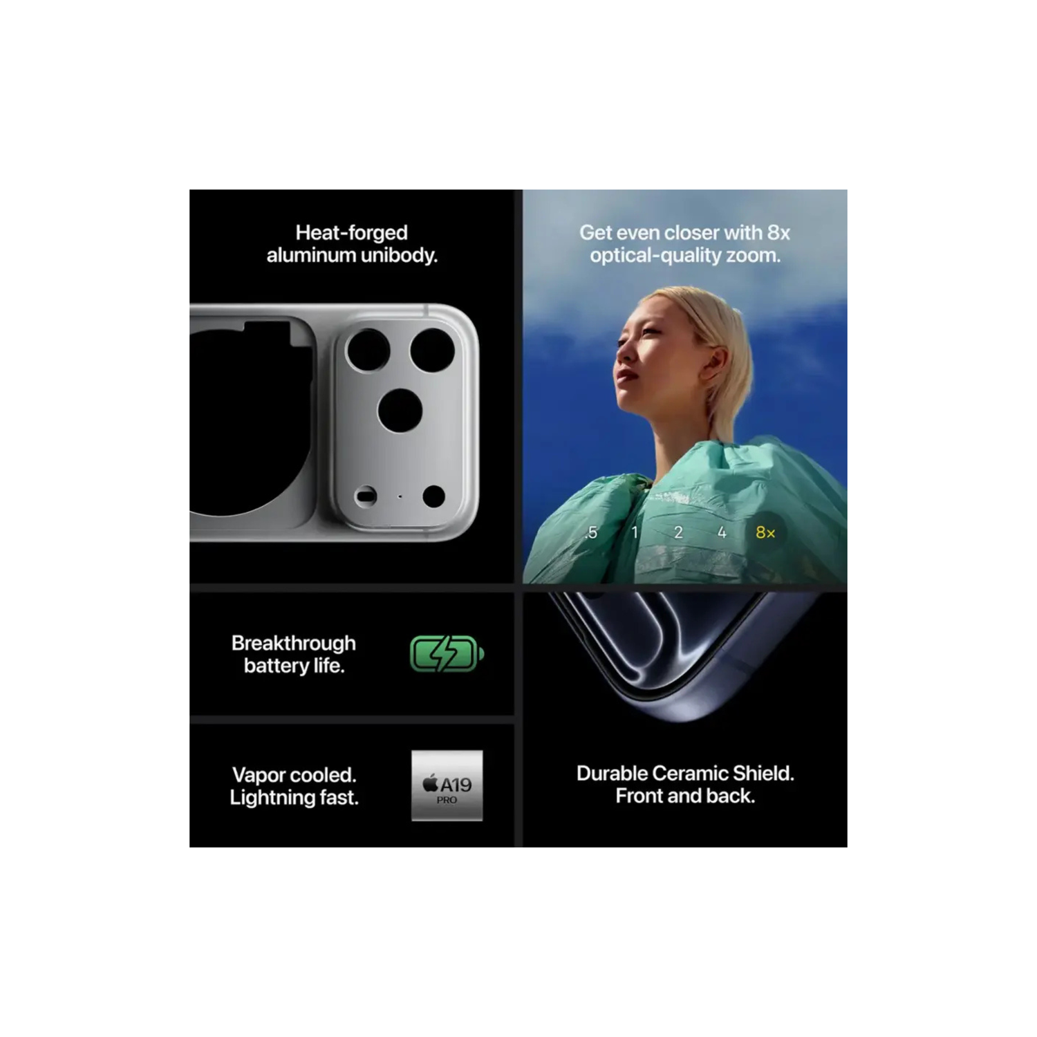 THE ULTIMATE PRO CAMERA SYSTEM—With all 48MP rear cameras and 8x optical-quality zoom—the widest zoom range ever in an iPhone. It’s the equivalent of 8 pro lenses in your pocket.