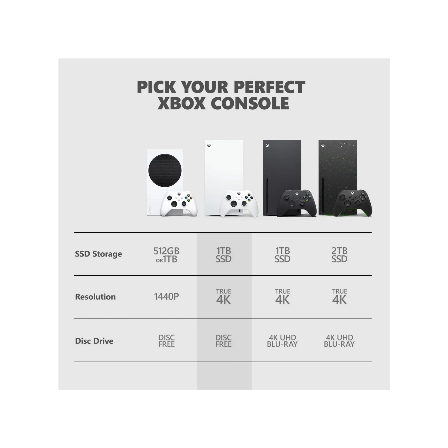 Experience the fastest, most powerful Xbox ever with Xbox Series X, now all-digital with a 1TB SSD in Robot White. Explore rich new worlds with 12 teraflops of raw graphic processing power, DirectX ray tracing, a custom SSD, and 4K gaming. Dive into legendary franchises like Call of Duty, Forza, Diablo, Halo, and more that come to life on Xbox Series X. Make the most of every gaming minute with Quick Resume, lightning-fast load times, and gameplay of up to 120 FPS—all powered by Xbox Velocity Architecture. Enjoy thousands of games from four generations of Xbox, with hundreds of optimized titles that look and play better than ever. Get the most out of your Xbox Series X with Xbox Game Pass Ultimate (membership sold separately). Play new games like Call of Duty: Black Ops 6, Avowed, and Indiana Jones and the Great Circle on day one, enjoy hundreds of high-quality games like Diablo IV, Forza Motorsport, Starfield, and more—with games added all the time, there’s always something new to play with Xbox Game Pass Ultimate.